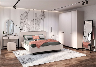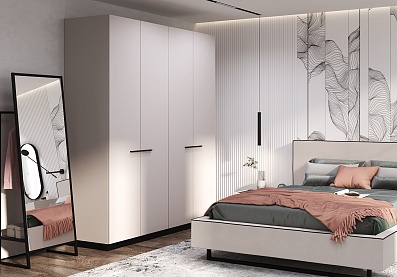 Шкаф Милагро с полками и штангой для одежды Кашемир серый, Камень Пьетра, Черный графит