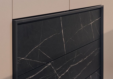 Тумба Милагро под телевизор с выдвижными ящиками Кашемир серый, Камень Пьетра, Черный