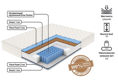 Матрас Free 90 х 200 Средняя /Выше среднего с пружинным блоком