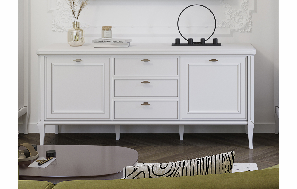 – описание: назначение для гостиной, размер 214.8x287x50.5 см, стиль неоклассика, цвет бело-серый.